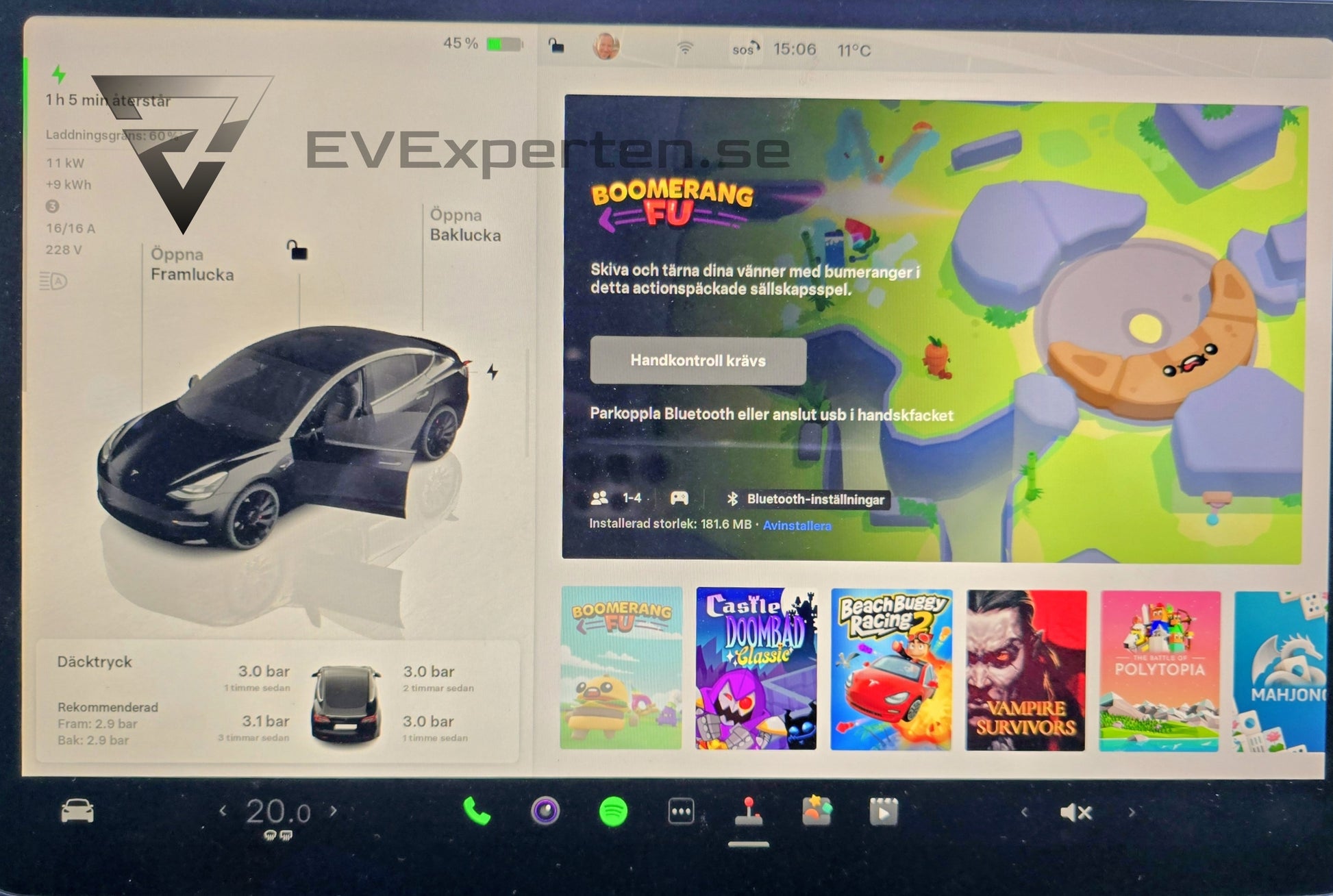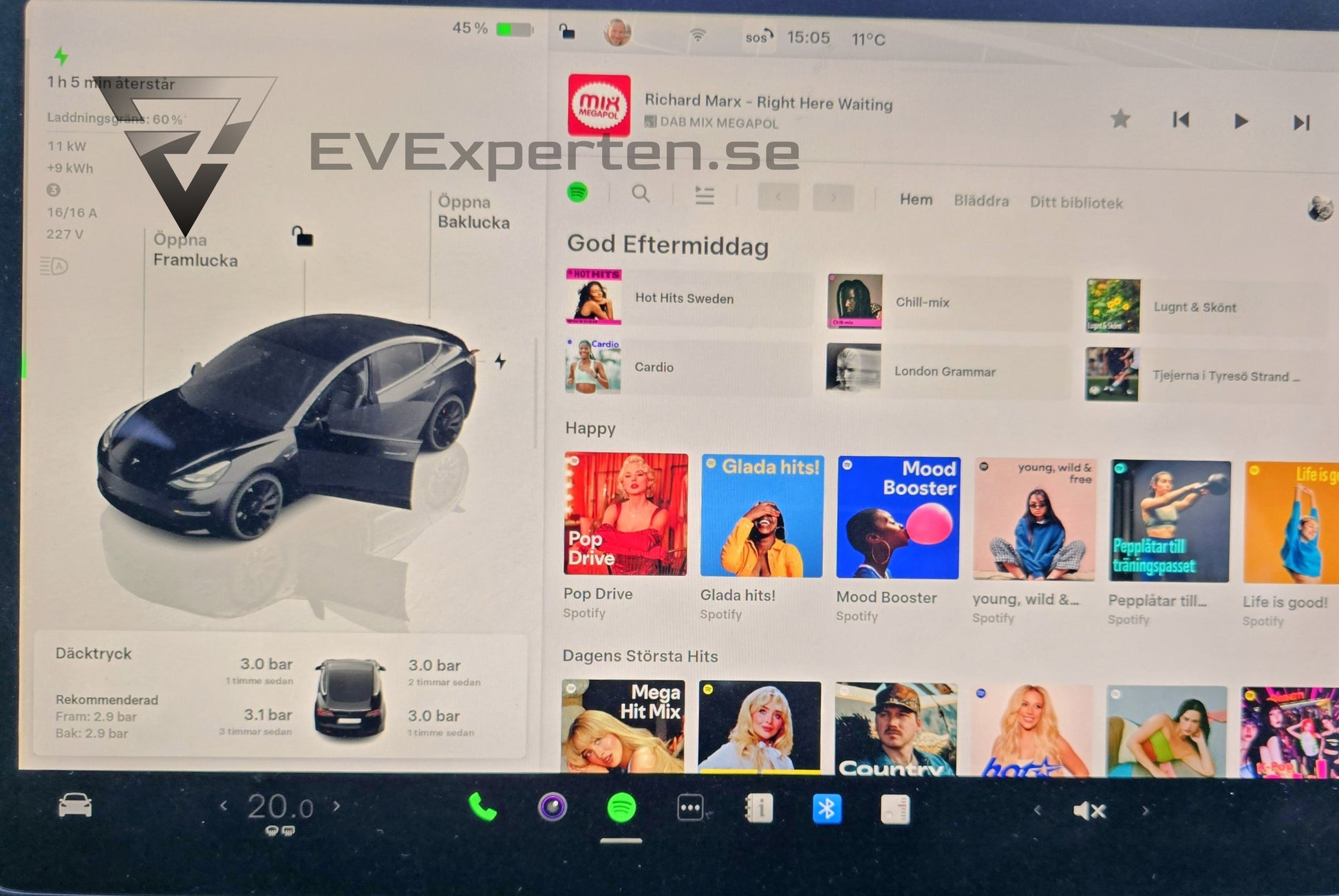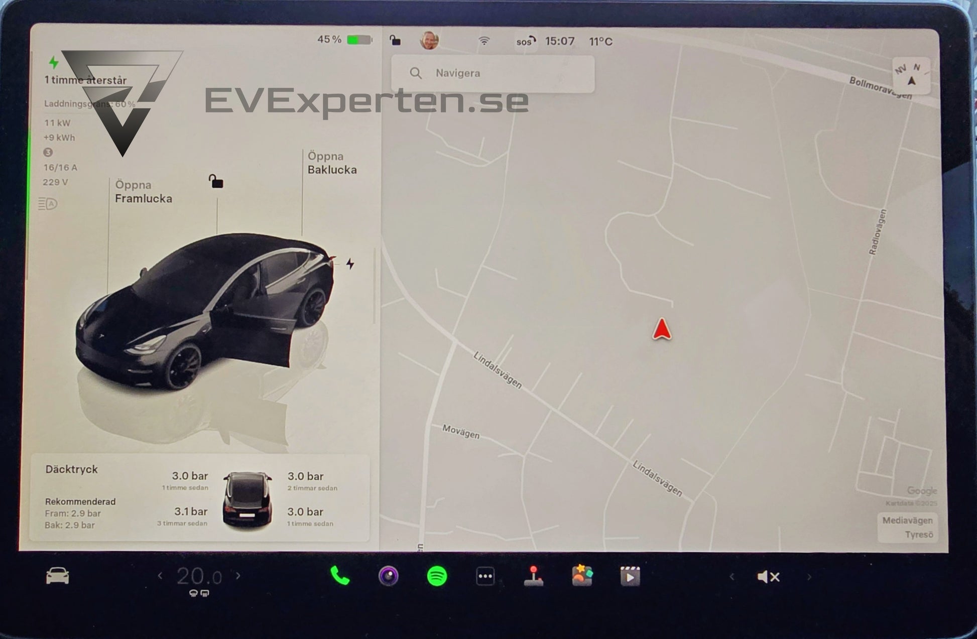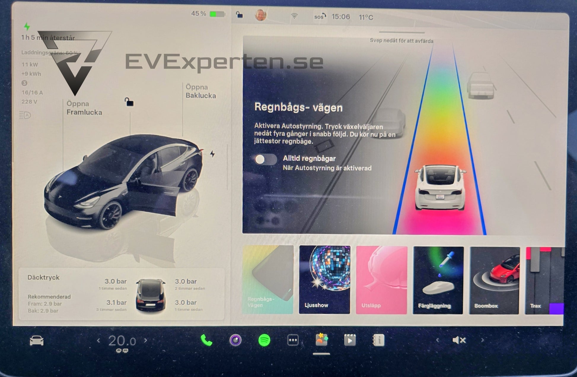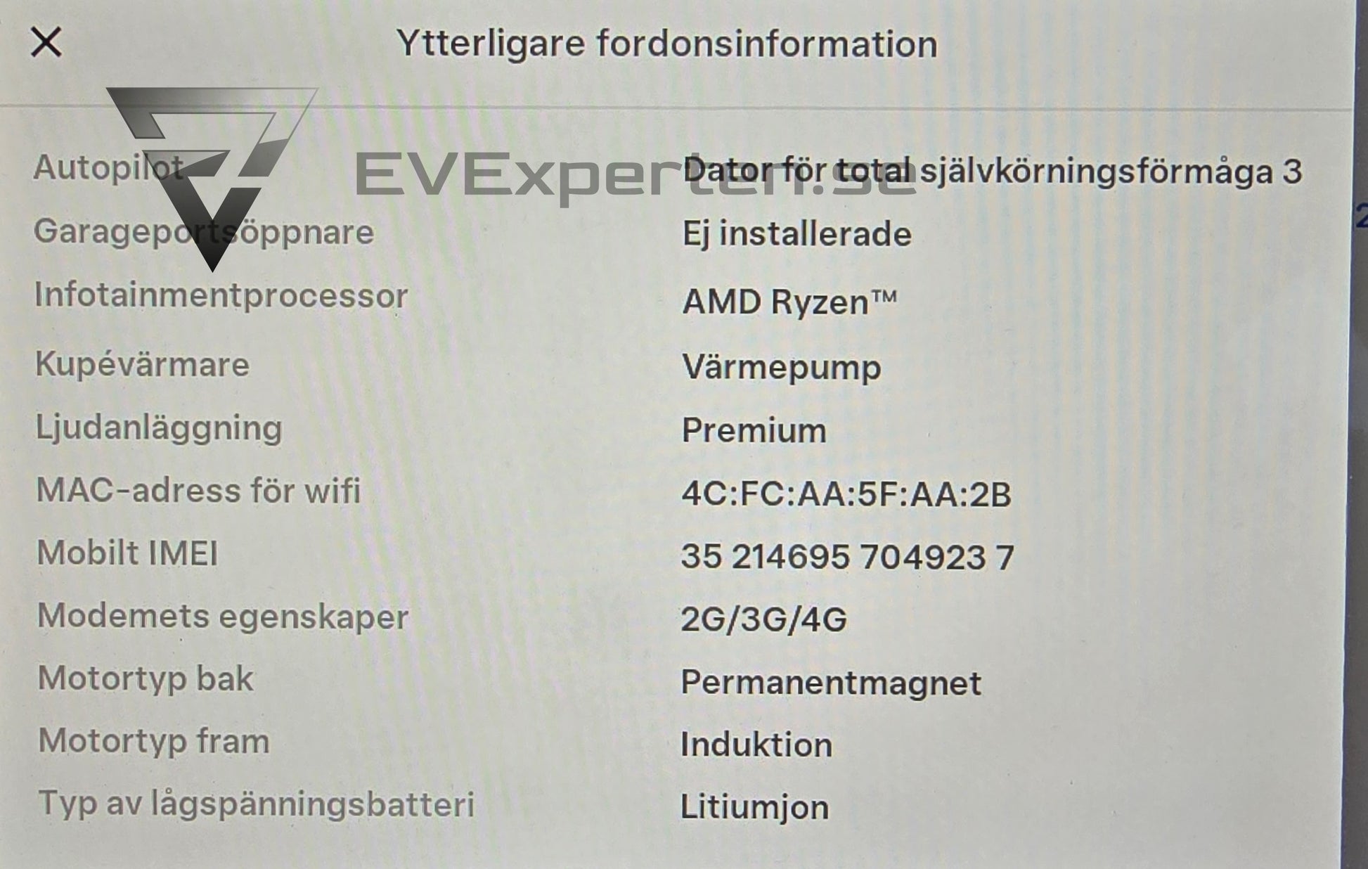 | Medföljande laddutrustning | Typ 2 kabel och Tesla UMC för vanligt 230-volts uttag |