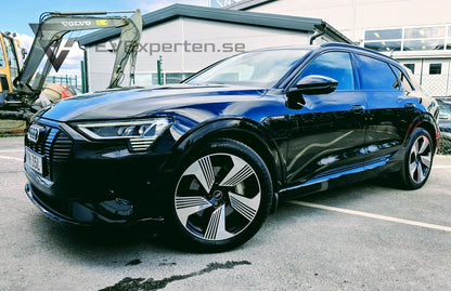 Audi E-Tron är en otroligt bekväm och tyst bil med mycket hög kvalitetskänsla. Samtliga versioner har ställbar luftfjädring och fyrhjulsdrift. Räckvidden är inte klassledande men kompenseras mycket av den otroligt fina laddkurvan där laddhastigheten på ca 150 kW hålls hela vägen upp till ca 80% SOC! Bilen är fullservad hos Audi, senast i mars 2025.