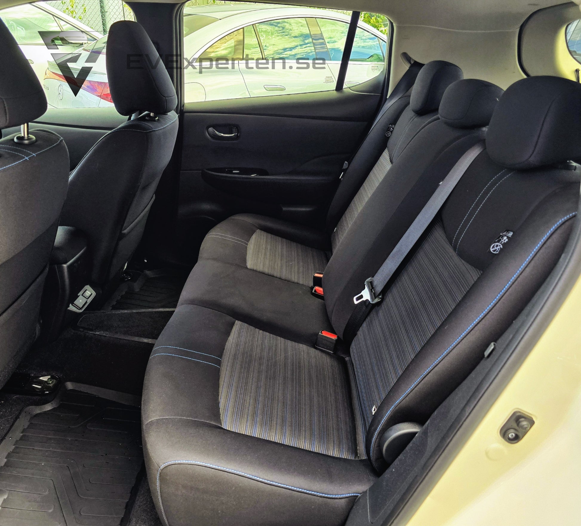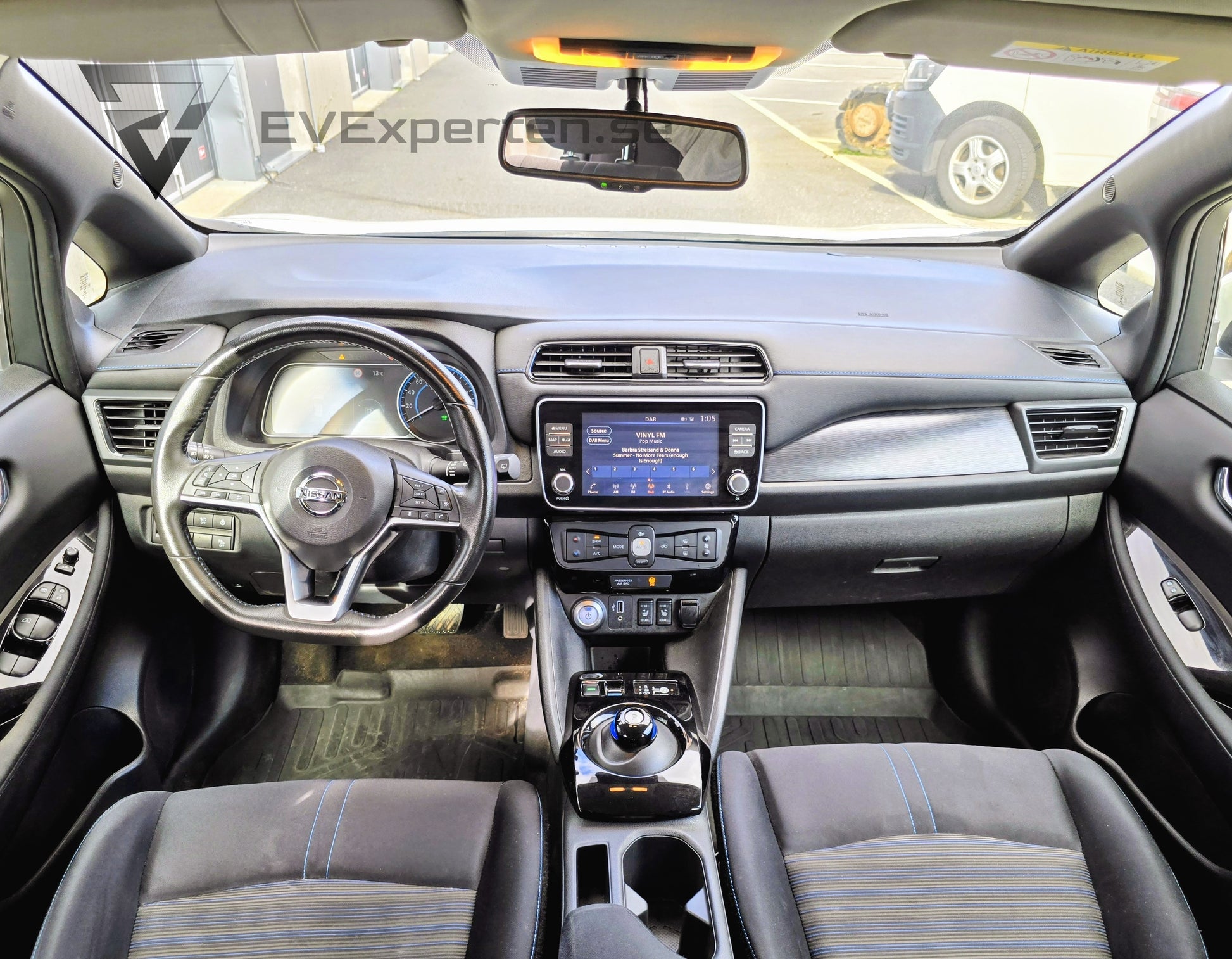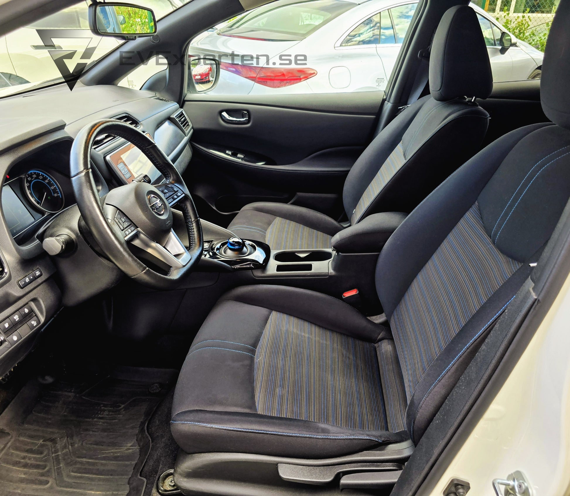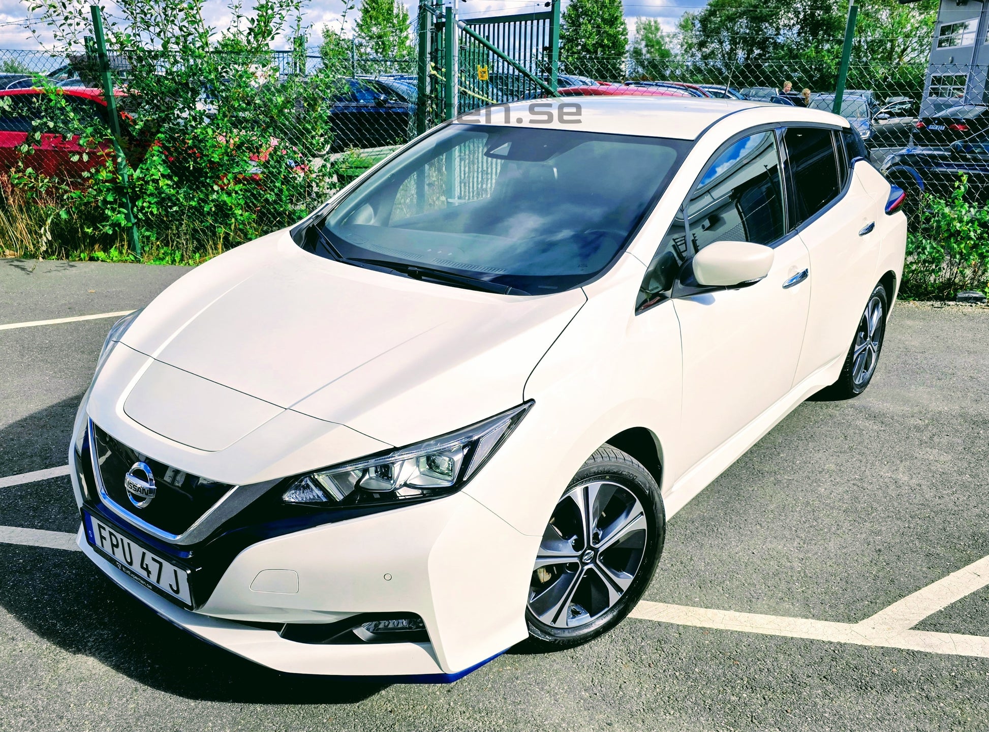 En Nissan Leaf i fint skick med det stora batteriet på 62 kWh med mycket bra batterihälsa. Tack vara det stora batteriet får man både mycket fin räckvidd men även betydligt bättre prestanda än i 40 kWh-versionen. Bilen är välutrustad med N-Connecta-paketet som innehåller bland annat 360 graders kamera, keyless entry och start, uppvärmda framstolar och ratt, digitalradio, Apple CarPlay, Android Auto, touchskärm med navigation, Driver Assist-paketet, 17" fälgar och tonade bakrutor mm.