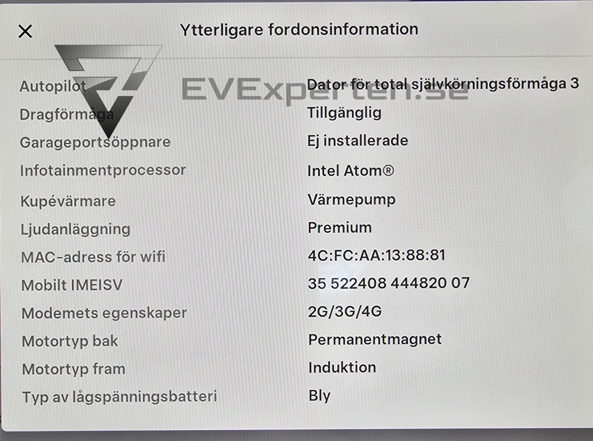 Medföljande laddutrustning | Typ 2 kabel och Tesla UMC för vanligt 230-volts uttag |