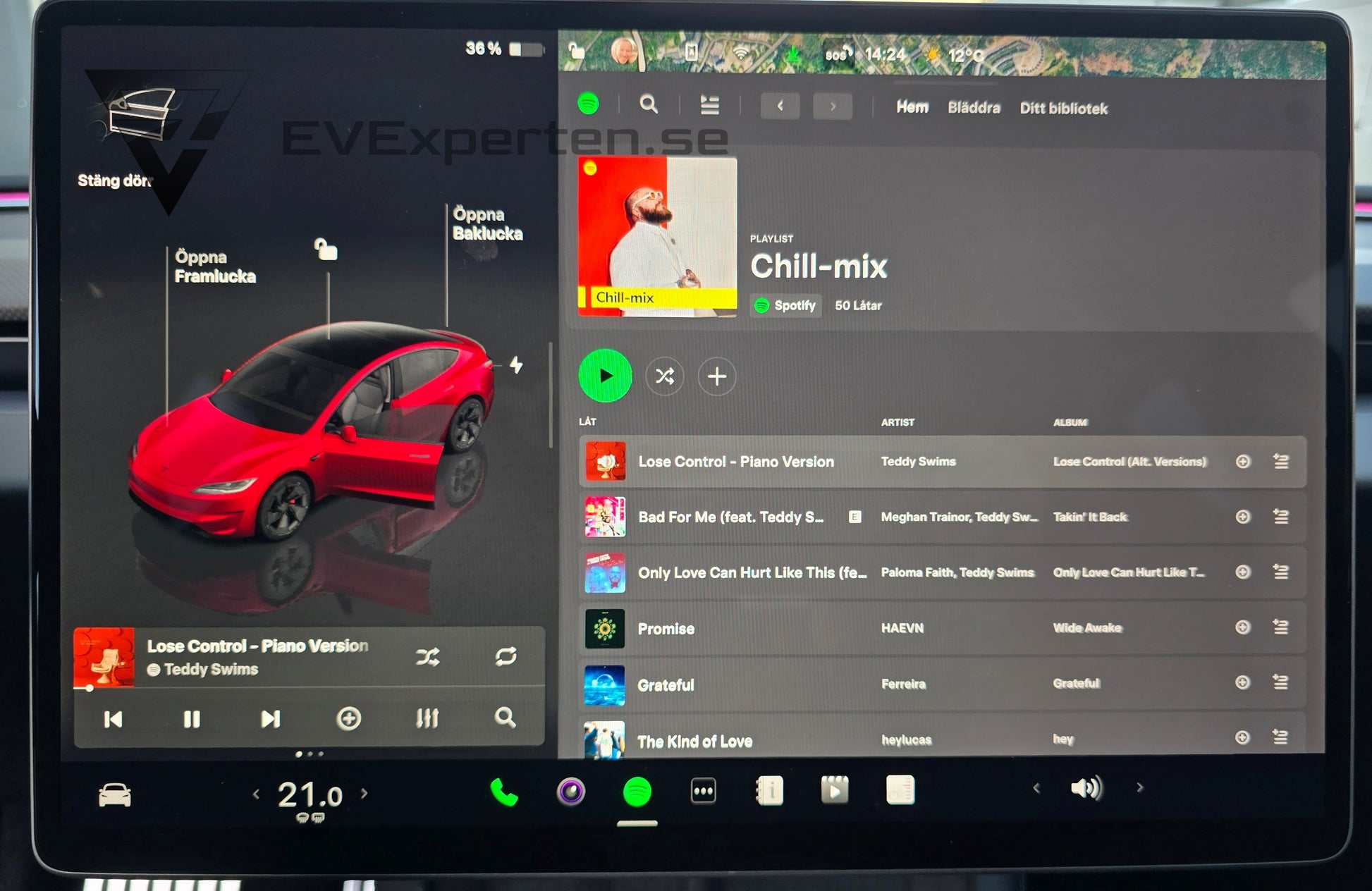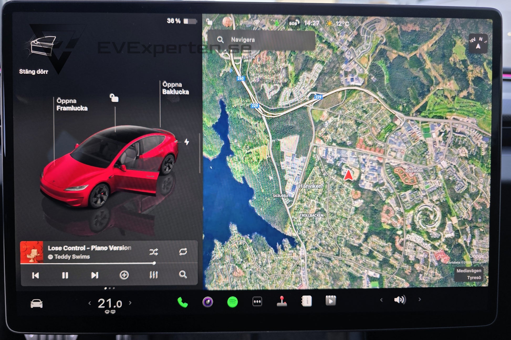 | Medföljande laddutrustning | Typ 2 kabel och Tesla UMC för vanligt 230-volts uttag |